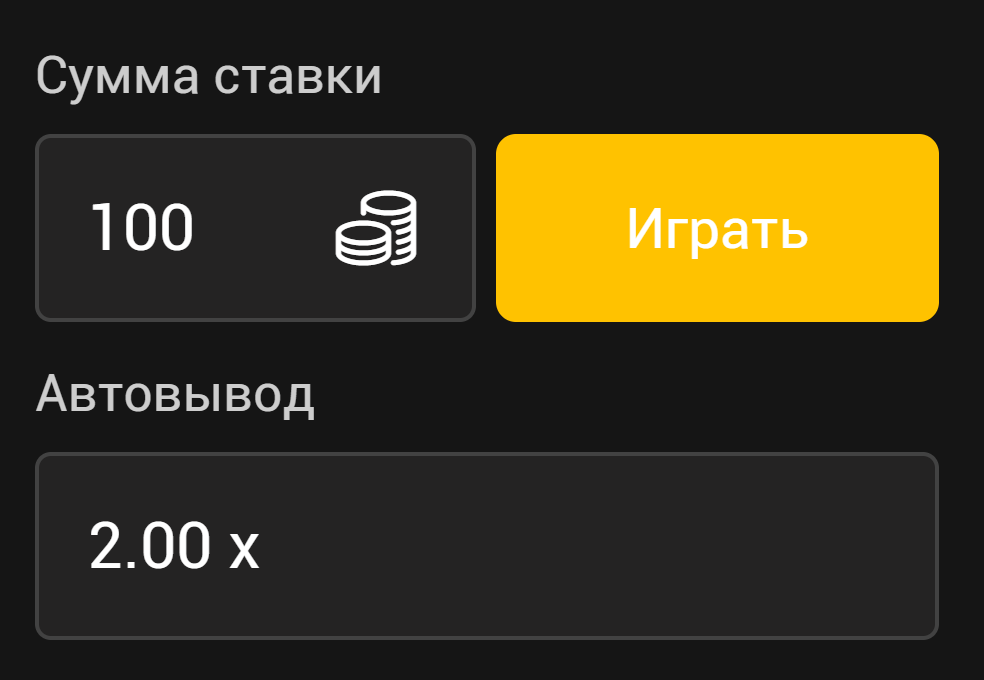 Введите ставку, затем выберите коэффициент, на котором будет осуществлен автоматический вывод, и нажмите кнопку "Играть"