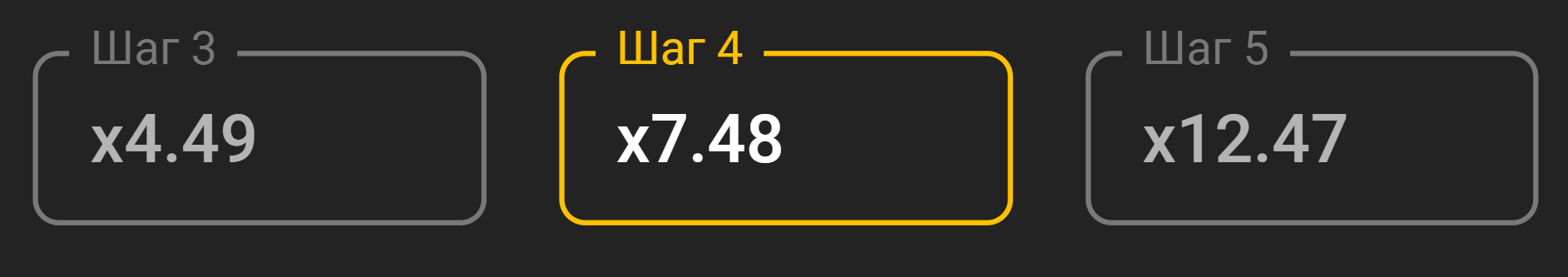 В зависимости от количества мин в ряду, будут рассчитаны и отображены коэффициенты для каждого уровня башни. Коэффициент, который соответствует текущему уровню, выделяется с помощью обводки.