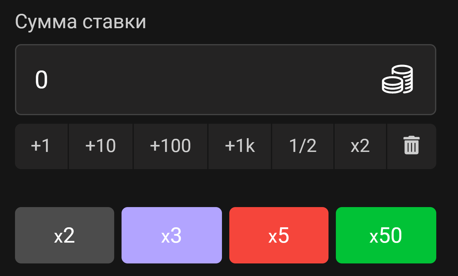 Введите сумму ставки и выберите цвет, на который хотите поставить. Максимальное количество ставок в одной игре — 3. Можно ставить на комбинации любых цветов. Допускаются несколько ставок на один цвет.